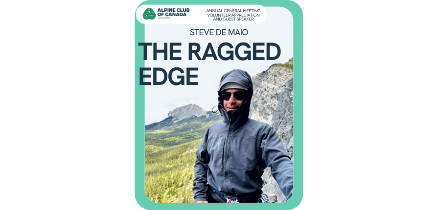Join us as Steve shares stories and anecdotes from his many adventures (and miss-adventures) completing ground up first ascents on the Niagara Escarpment and in the Canadian Rockies, all the while exploring and pushing “The Ragged Edge” of his capacity. There are close calls, learnings, huge falls, factor II falls and deep emotional and introspective elements, observations, and lessons. Steve has been described as “50% Gladiator and 50% Philosopher” and, at times, “too intense” or, perhaps “appropriately intense”. Joins us free for Steve’s riveting talk on Nov 22 and you can be the judge!